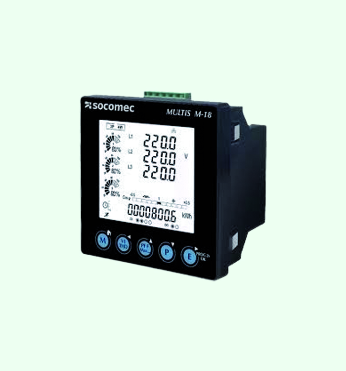 Meters Low Voltage Switchgears Medium Voltage Switchgears Plug & Sockets Capacitors APFC Panels Multi Functioning Meters Basic Meters Sandwitch Bustrunking Socomec Meters Socomec ATS Multis M-18, Class 0.5s, LCD Screen, U, V, I, F, P, Q, S, PF, KWH, KVARH, THD V & I, Min Max Values, Imp Exp. with RS 485 DIRIS A10 W/O RS485, Class 0.5s, V, I, F, P, Q, S, PF, KWH, kVARh, THDi & V, Dual Source